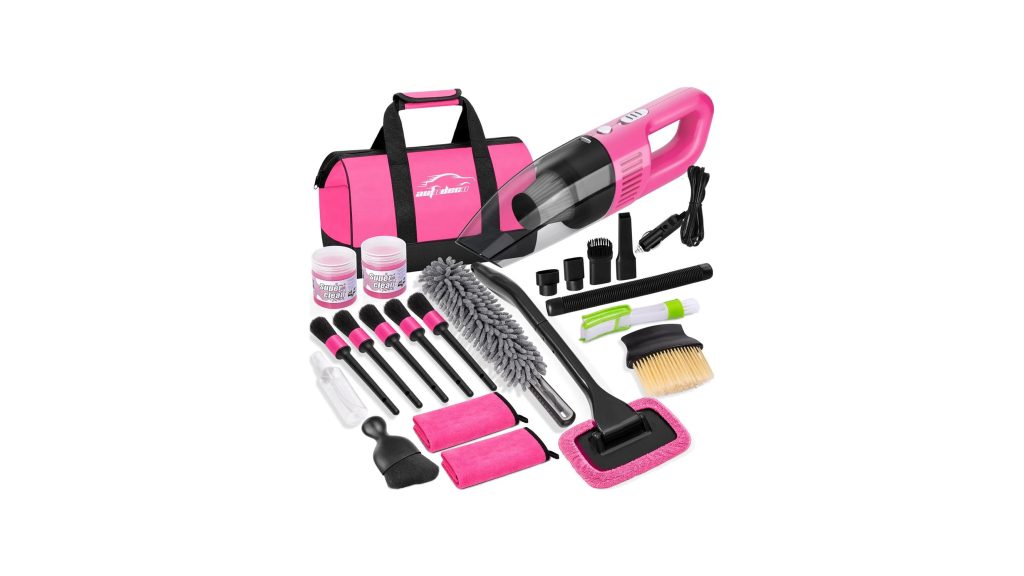 - Looking for a car cleaning kit that’s both effective and stylish? The AUTODECO Car Cleaning Kit, Car Vacuum Interior Detailing Cleaner Kit with High Power Handheld Vacuum, Brush Set, Windshield Tool, Duster, Towels, Complete Car Care Tools for Women (Pink) might just be your new favorite companion for keeping your vehicle spotless. This comprehensive set aims to make car detailing an enjoyable and efficient experience, all wrapped up in a vibrant pink package.