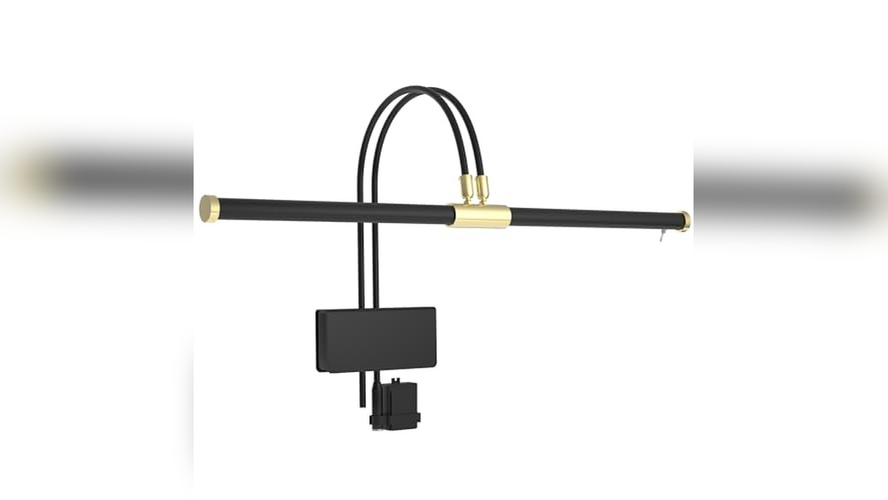 4. Cocoweb 19″ LED Grand Piano Light in Black with Brass Accents with Dimmer Clip