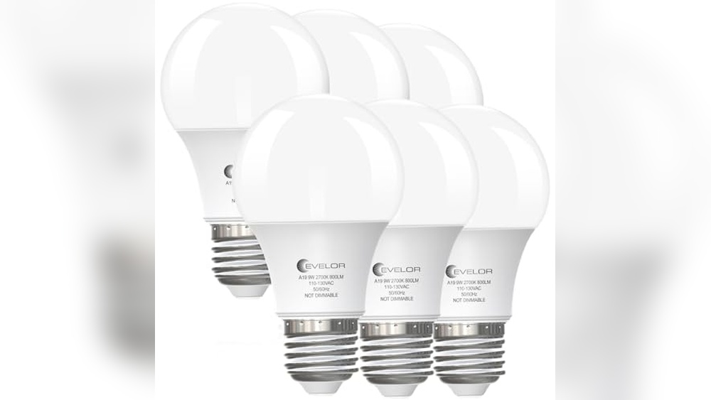 1. evelor 6-Pack A19 LED Light Bulbs,60 Watt Equivalent Soft White 2700K with E26 Base,Efficient 9W,800 Lumens Non-Dimmable Warm White LED Bulbs,15000 Hours, Ideal for Bedroom Living Room
