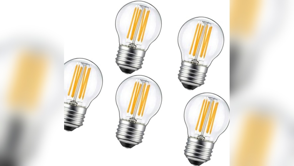 These E12 LED candelabra bulbs offer bright, warm white light with a vintage look. Each bulb uses only 4 watts but shines like a 40-watt bulb, saving energy. Clear glass and visible filaments add charm to chandeliers and ceiling fans. The warm 2700K color creates a cozy, inviting atmosphere in any room. Five bulbs come in one pack, perfect for replacing several fixtures at once. Durable and long-lasting, they provide reliable lighting for everyday use.