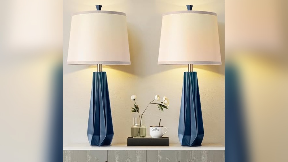 This set of two navy blue table lamps adds a modern touch to any room. Each lamp features a linen shade that softens the light for a cozy feel. Three color temperature options let you choose the perfect brightness for day or night. The 27-inch height suits nightstands, desks, or living room tables well. Included bulbs make setup quick and easy. Resin bases offer sturdy support and stylish design.