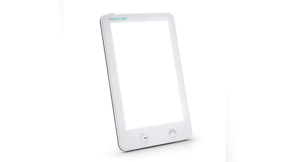 A portable light therapy lamp is a small device that mimics natural sunlight to boost mood.