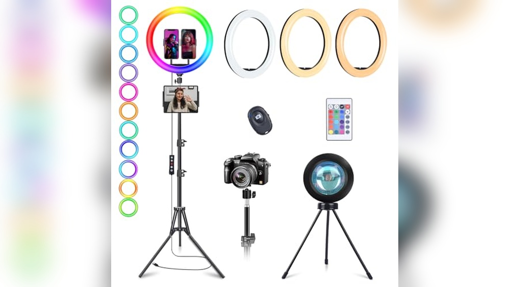 This ring light is perfect for videos and photos. The 13-inch size gives soft, even light. Its 76-inch tall stand is very sturdy and easy to adjust. Two phone holders and a tablet holder make recording simple. The sunset lamp adds a nice warm glow. With 51 color modes and 12 dimming levels, you can find the right light for any mood. The desk tripod is solid and fits well on my table. Great for TikTok, YouTube, or video calls. Easy to set up and use. A good choice for content creators.