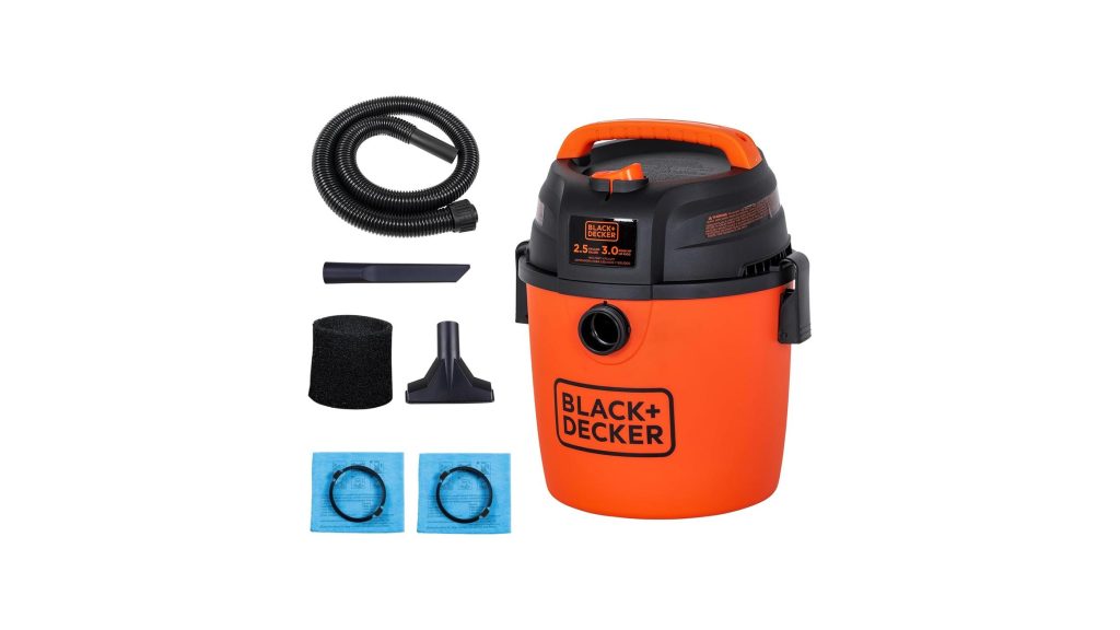 - Tackling everyday messes, from dusty workshops to spilled liquids, can be a chore, but the BLACK+DECKER 2.5 Gallon Shop Vac, 3 HP Wet Dry Vacuum with Powerful Suction, Portable for Garage Car and Home Use, Pet Hair Cleaning, Accessories Included, BDXV18134PA is designed to make cleanup quick and efficient. This compact powerhouse offers robust suction and versatile functionality, making it a handy tool for a variety of cleaning tasks around your home, garage, or car.