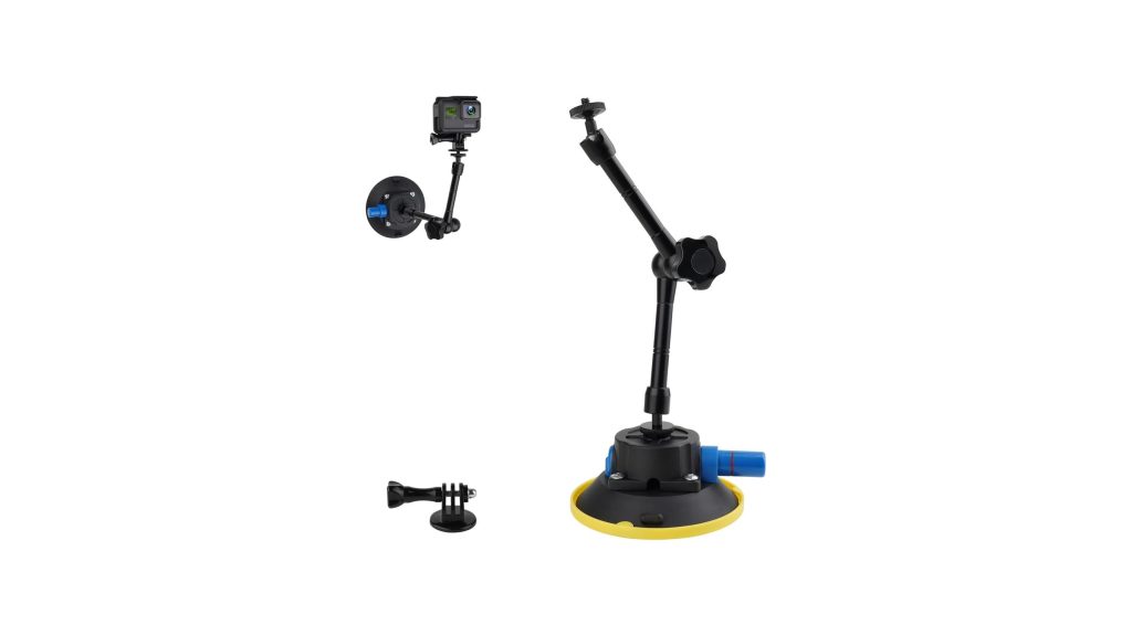 The Camera Suction Cup Mount Compatible with GoPro Hero/Insta 360/DJI OSMO/AKASO/DSLR/Camcorder Devices,Magic Arm Car and Boat Windshield Window Mount,4.5″ Air Pump Vacuum Suction 10″ Aluminum Alloy Arm stands out as a highly versatile and secure mounting solution for a wide array of cameras. The standout feature is undoubtedly its air pump vacuum design, which offers peace of mind with its strong adhesion capabilities. Combined with its broad compatibility, robust construction, and adjustable arm, this mount provides photographers and videographers with the flexibility to capture dynamic shots from almost anywhere on smooth surfaces. Whether you’re looking to film your next road trip from a unique perspective or document your adventures on the water, this mount is a reliable and valuable addition to your gear.
