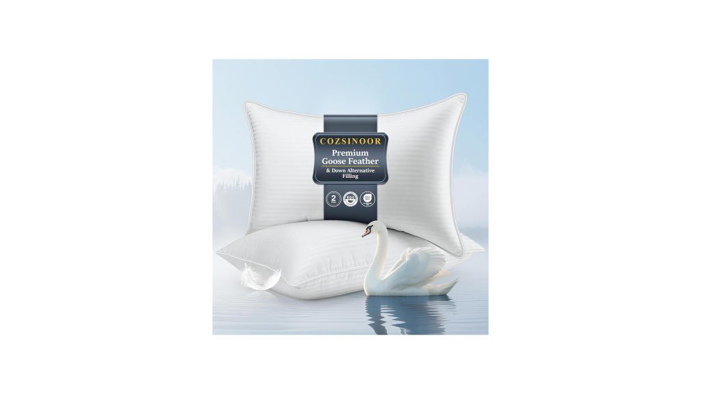 - Transform your sleep experience with the luxurious comfort of the COZSINOOR Goose Feather Pillows Queen Size Set of 2 – Hotel Down Bed Pillow for Sleeping, Soft 600 TC Cotton Cover, Fluffy Support Surround Fill Down Alternative for Back, Stomach, Side Sleepers. Designed to offer a hotel-quality feel right in your own bedroom, these pillows promise to cradle you into a restful night’s sleep, no matter your preferred sleeping position. Get ready to discover a new level of relaxation and support for your head and neck.