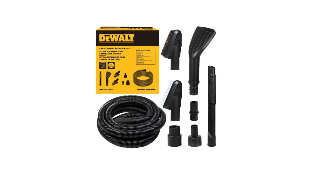 - Tired of dust bunnies and crumbs clinging to every nook and cranny of your car’s interior? The DEWALT 8-Piece Car Detailing Vacuum Hose Accessory Kit, Shop Vac Attachments for Efficient Cleaning, Compatible with Most Wet and Dry Shop Vacuum, DXVA13-0801 promises to transform your car cleaning routine, making it easier and more effective to achieve a showroom shine inside and out. This comprehensive kit is designed to tackle even the most stubborn dirt and debris with its specialized tools and extended reach.