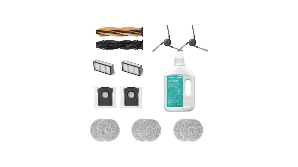 This dreame Robot Vacuum Accessories Kit Compatible with X50 Ultra / L50 Ultra/L40s Ultra (Detangling DuoBrush1, Side Brush2, Dust Box Filter2, Dust Collection Bag2, Cleaning Solution1, Mop Pad6) is a highly practical and valuable purchase for owners of the compatible Dreame robot vacuums. The inclusion of the detangling brush is a thoughtful addition that addresses a common frustration. With all the essential consumables bundled together, this kit offers convenience, ensures optimal cleaning performance, and simplifies maintenance. It’s a smart investment for anyone looking to keep their automated cleaning assistant in top condition and achieve a cleaner home with less hassle.