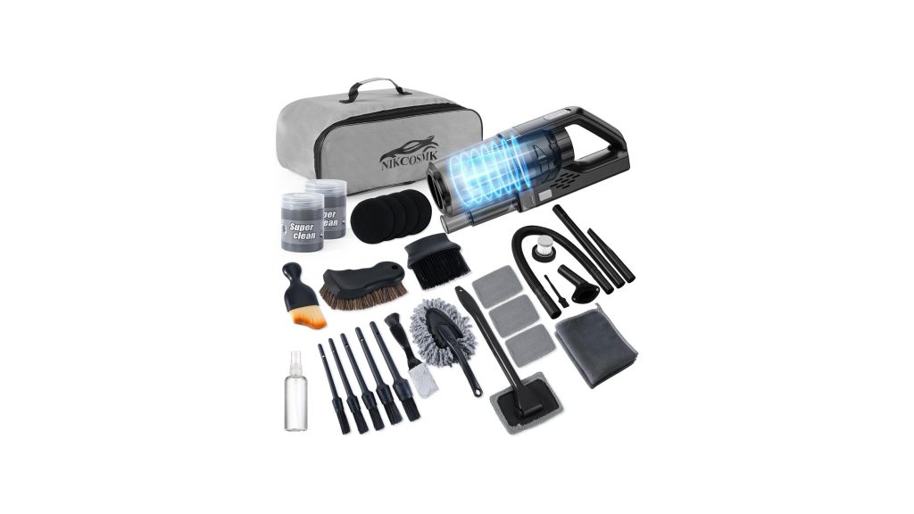 - Tired of a car interior that’s less than pristine? The NIKCOSMK Car Cleaning Kit, Car Detailing Kit with Car Vacuum 8000PA High Suction, Car Interior Cleaning Supplies with Detailing Brushes, Windshield Cleaner Tool, Car Accessories for Men & Women aims to transform your vehicle’s cleanliness with a comprehensive set of tools. This kit promises to tackle everything from dust bunnies to stubborn smudges, offering a complete solution for car enthusiasts and everyday drivers alike.