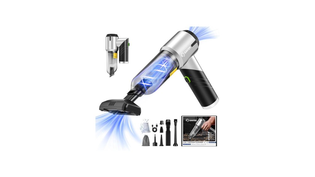- Tired of crumbs, pet hair, and dust accumulating in your car, home, or office? The Saker Handheld Car Vacuum Portable Cordless 17000PA Mini Air Duster Blower Rechargeable Foldable Vacuum Cleaner with Brushless Motor for Home, Office Pet HL132 Black might just be the compact cleaning companion you’ve been searching for. This versatile device promises powerful suction and ultimate portability, aiming to tackle those everyday messes with ease. Let’s dive into what this little gadget has to offer.