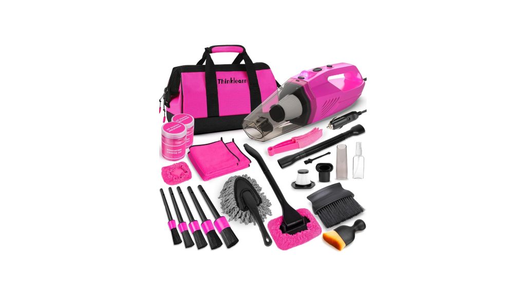 - Keeping your car looking its best can be a chore, but the ThinkLearn Car Cleaning Kit, Car Vacuum Detailing Kit Interior with High Power Handheld Vacuum, Including 7Pcs Detailing Brush Set, Windshield Cleaner, Pink Car Accessories for Women aims to make that task more enjoyable and effective. This all-in-one kit promises to tackle interior messes with a powerful handheld vacuum and a comprehensive set of detailing tools, all with a touch of feminine flair.
