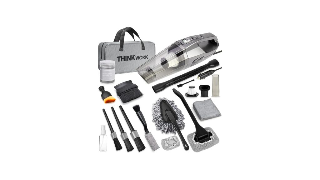 - Tired of a perpetually dusty and crumb-filled car interior? The THINKWORK Car Cleaning Kit, Car Vacuum Kit, Gray Car Interior Detailing Kit with 8000PA High Power Vacuum, Including 7Pcs Detailing Brush Set and Bag might just be the solution you’ve been searching for to achieve that showroom shine. This comprehensive kit aims to tackle all your car cleaning woes, from stubborn pet hair to everyday grime, making vehicle maintenance a breeze.