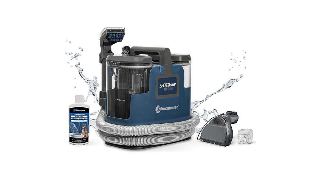 - Tired of stubborn pet stains and accidental spills turning your carpets and upholstery into a battleground? The Vacmaster SCB301 400 Series Portable Carpet & Upholstery Spot Cleaner Machine, 15Kpa Power Suction with Versatile Tools for Pets, Area Rugs and Couches is here to bring relief to your cleaning woes, offering powerful stain removal in a convenient, portable package. This machine is designed to tackle the toughest messes, making it a valuable addition to any home, especially those with furry friends or a penchant for snacking on the couch.